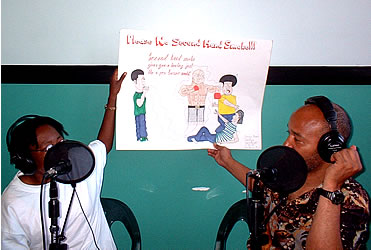 Announcing the winners of the poster art contest against smoking cigarettes at Los Angeles' AFIBA Center for World No Tobacco Day, May 31, 2003/6243